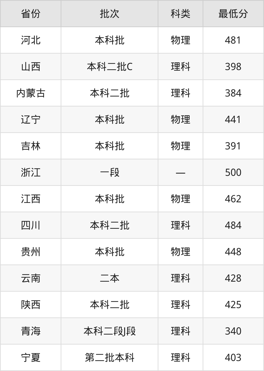 南昌理工学院计算机科学与技术专业录取分数线从340分到500分不等,在部分地区的最低分数线如下:
