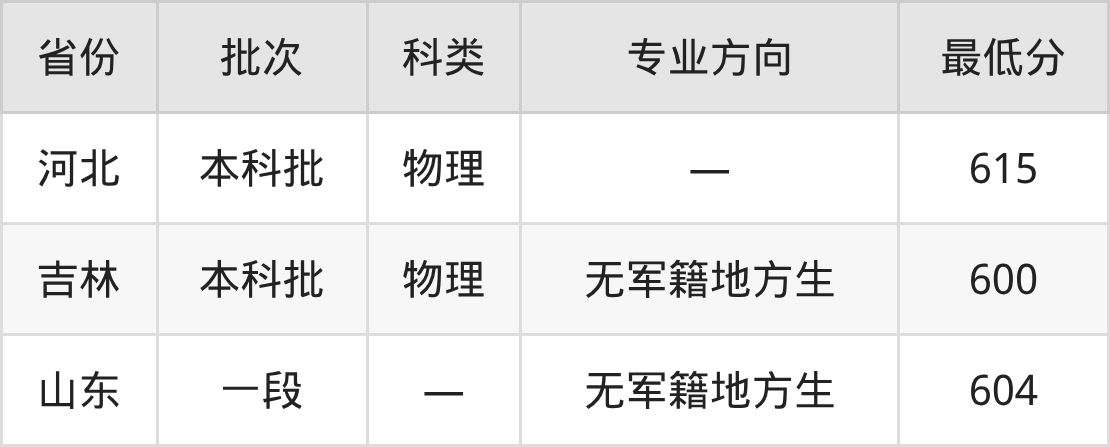 中国人民解放军空军军医大学生物医学工程专业在全国各省最低录取分数线为600分(吉林物理类),除此之外,在其余地区的最低分为河北物理类615分、山东604分,以上数据均为2025年数据,供2026年高考生参考。
