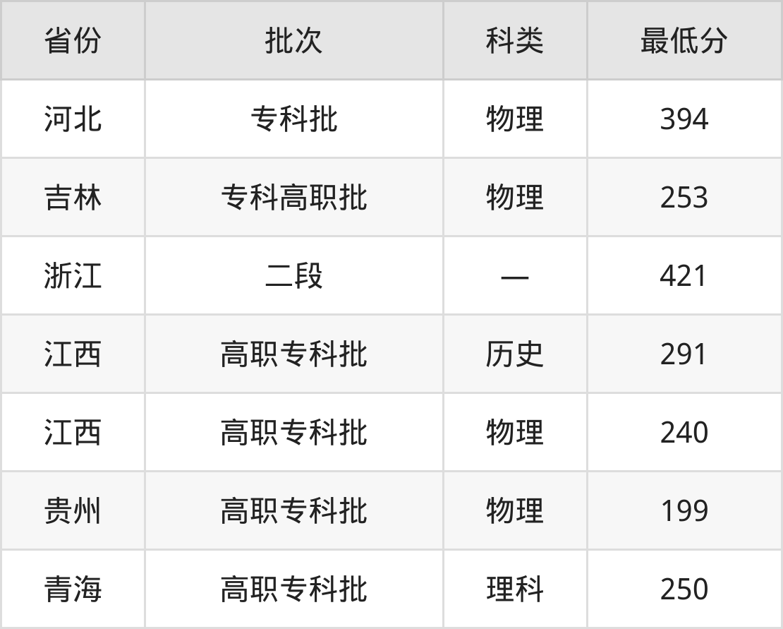 南昌工学院高速铁路客运服务专业在全国各省最低录取分数线为199分(贵州物理类),除此之外,在其余地区的最低分为浙江421分、江西物理类240分、青海理科250分、河北物理类394分等,以上数据均为2024年数据,供2025年高考生参考。