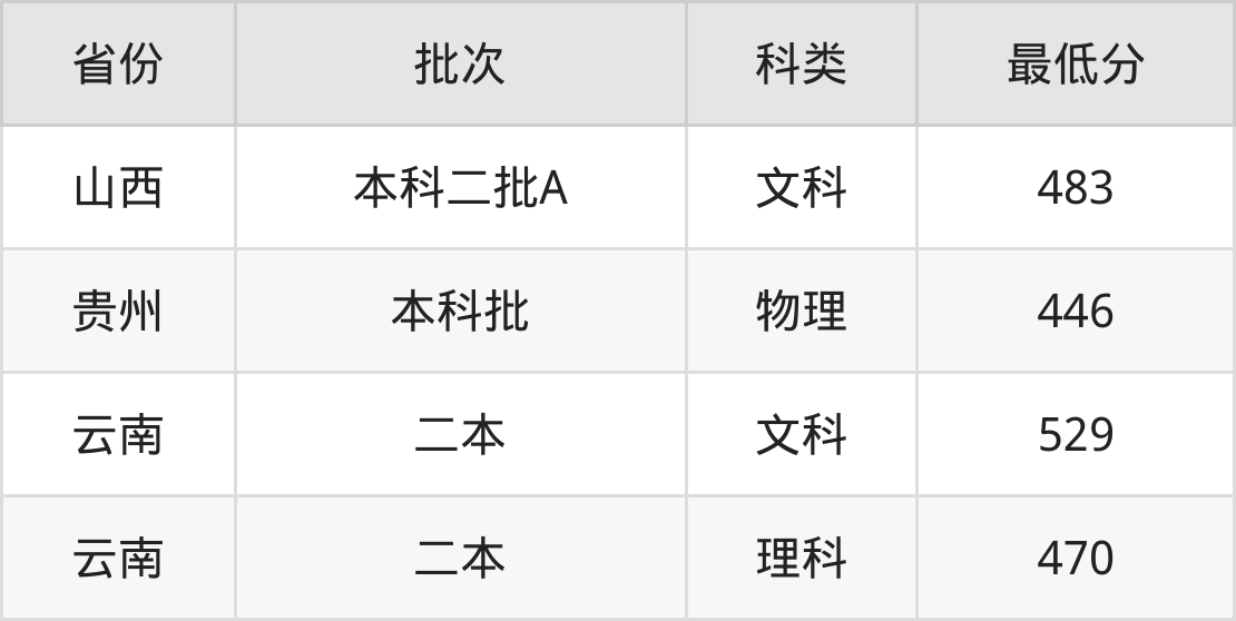 玉溪师范学院人文地理与城乡规划专业在全国各省最低录取分数线为446分(贵州物理类),除此之外,在其余地区的最低分为云南理科470分、山西文科483分,以上数据均为2024年数据,供2025年高考生参考。