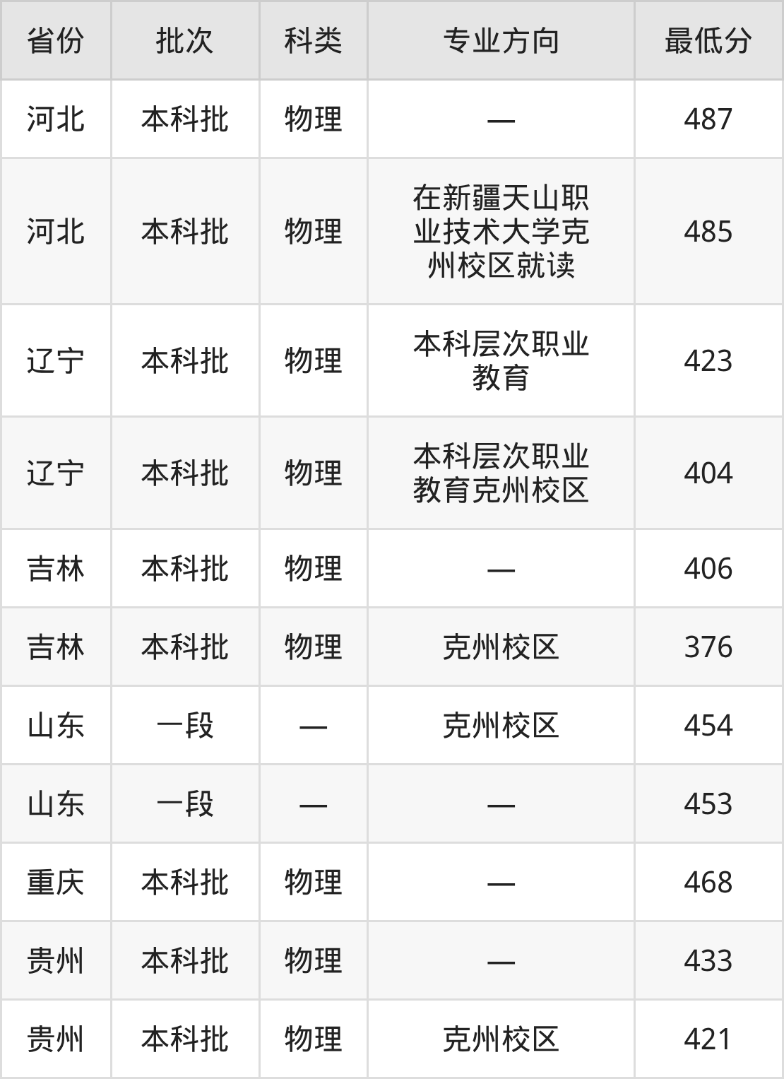 新疆天山职业技术大学电梯工程技术专业在全国各省录取分数线: