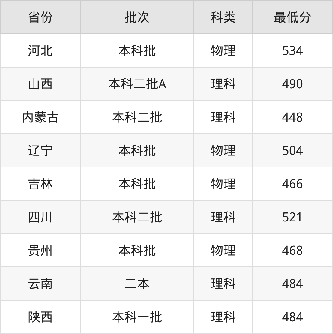 内蒙古:理科最低448分