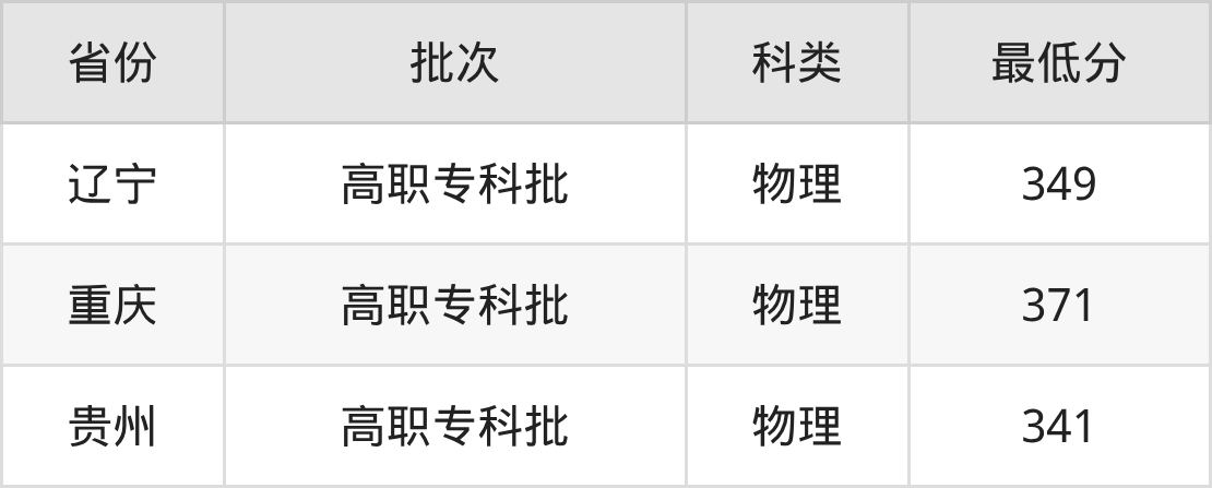 贵州航空职业技术学院数控技术专业录取分数线从341分到371分不等,最低分数线如下: