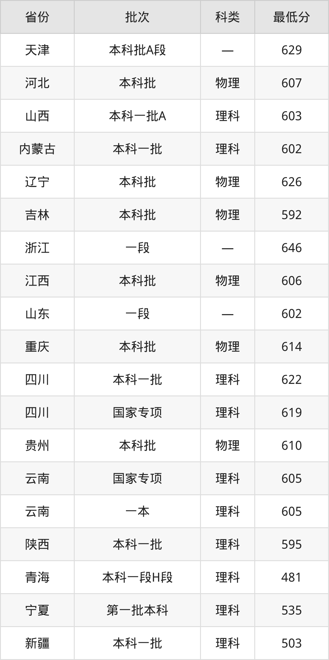 中央民族大学纳米材料与技术专业录取分数线从481分到646分不等,在部分地区的最低分数线如下: