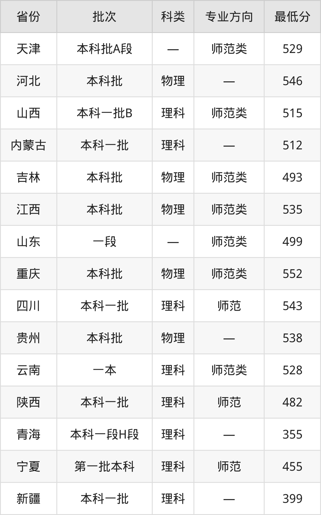 海南师范大学化学专业录取分数线从355分到552分不等,在部分地区的最低分数线如下: