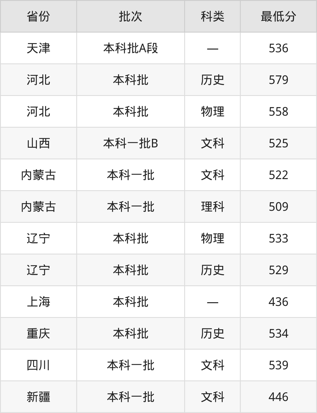 内蒙古:文科最低522分、理科最低509分