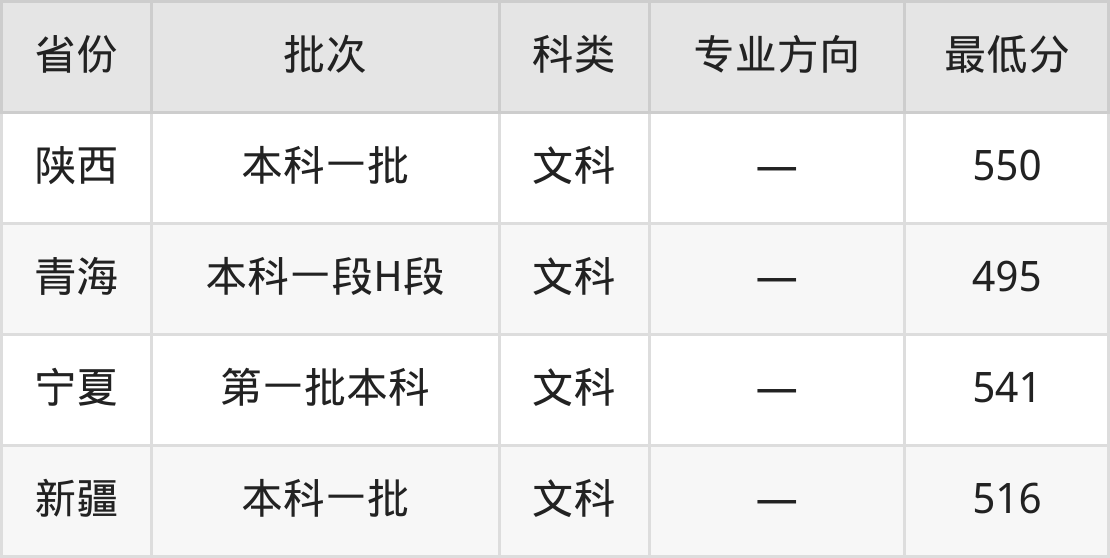 湘潭大学法学专业录取分数线从495分到653分不等,在部分地区的最低分数线如下: