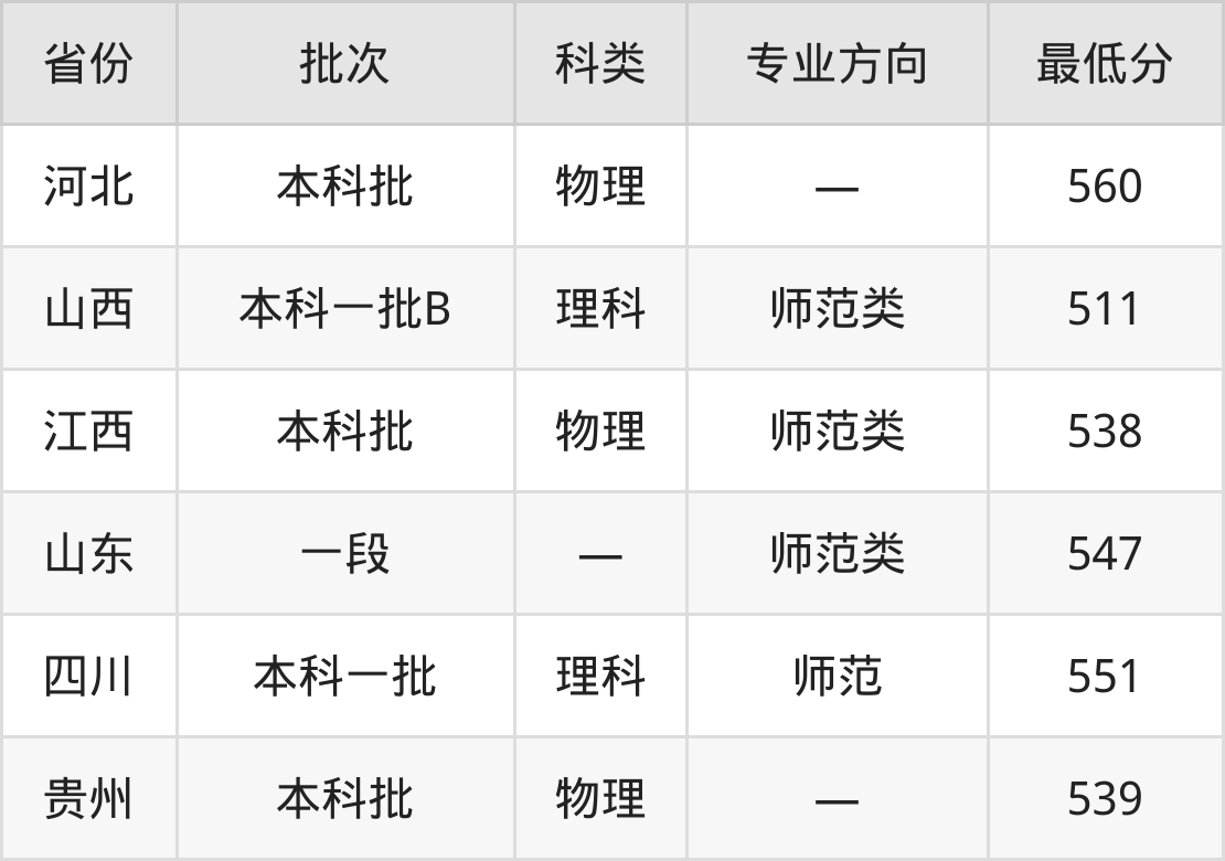 河南师范大学化学专业录取分数线从511分到560分不等,最低分数线如下: