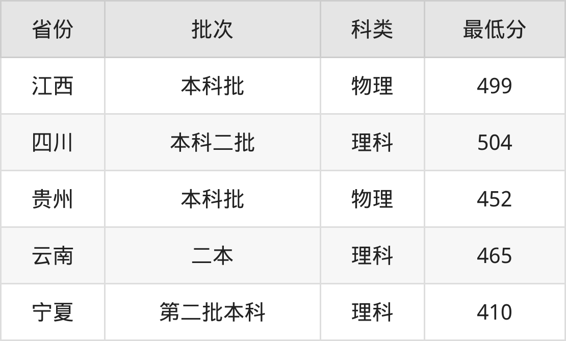 福建技术师范学院生物工程专业在全国各省最低录取分数线为410分(宁夏理科),除此之外,在其余地区的最低分为江西物理类499分、四川理科504分、贵州物理类452分、云南理科465分等,以上数据均为2024年数据,供2025年高考生参考。
