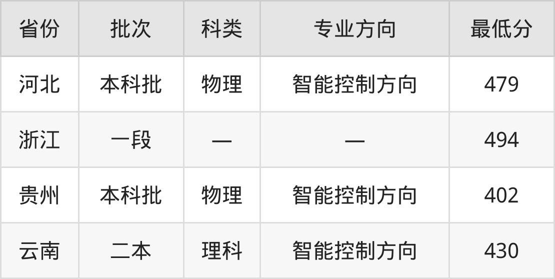 武汉华夏理工学院自动化专业录取分数线从402分到494分不等,最低分数线如下: