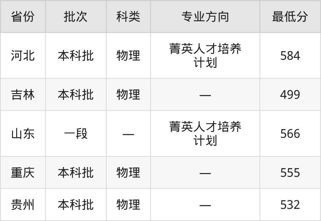 | 物理类 | 201组(国 家专项) | 国家专项菁英 人才培养计划 | 6 |