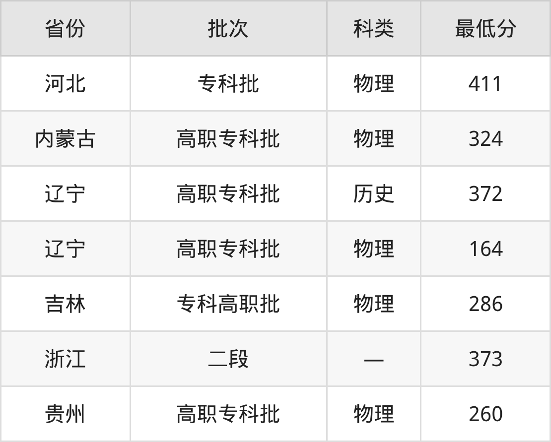 沈阳工学院机械制造及自动化专业录取分数线从164分到411分不等,最低分数线如下: