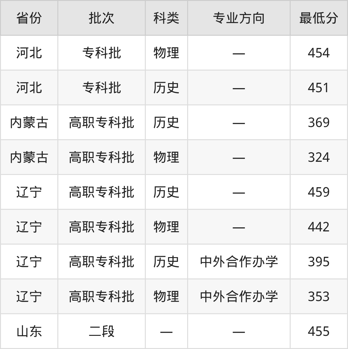 辽宁省交通高等专科学校现代物流管理专业在全国各省最低录取分数线为324分(内蒙古物理类),除此之外,在其余地区的最低分为河北历史类451分、辽宁物理类353分、山东455分,以上数据均为2025年数据,供2026年高考生参考。