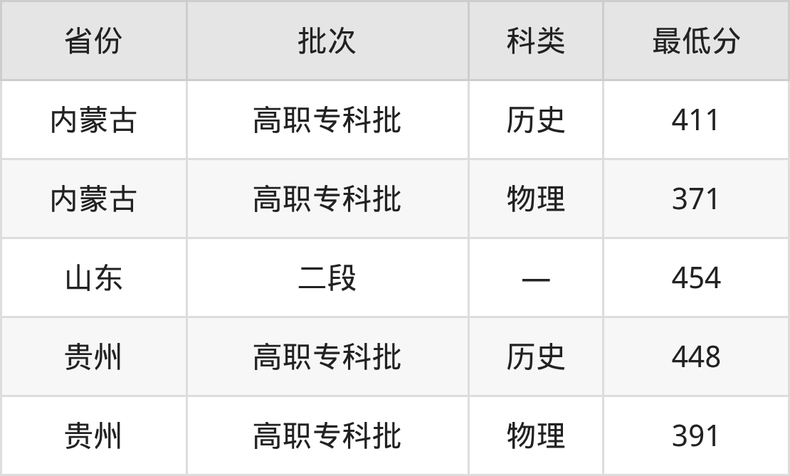 山东商业职业技术学院智慧健康养老服务与管理专业录取分数线从371分到454分不等,最低分数线如下: