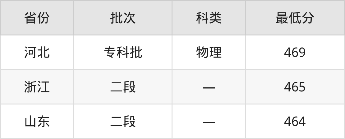 陕西交通职业技术学院数字媒体技术专业在全国各省最低录取分数线为464分(山东),除此之外,在其余地区的最低分为河北物理类469分、浙江465分,以上数据均为2025年数据,供2026年高考生参考。