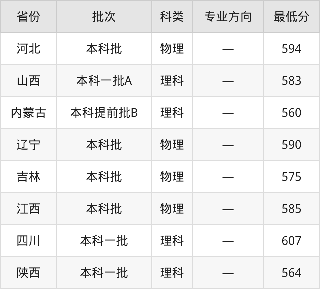陕西师范大学心理学类专业在全国各省最低录取分数线为560分(内蒙古理科),除此之外,在其余地区的最低分为辽宁物理类590分、吉林物理类575分、江西物理类585分、四川理科607分等,以上数据均为2024年数据,供2025年高考生参考。