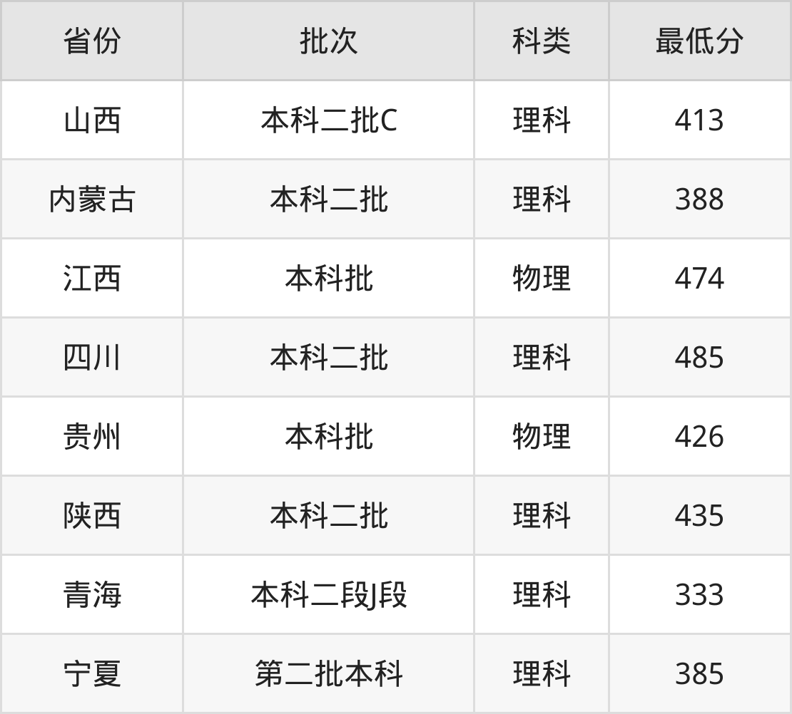 湖北文理学院理工学院机械设计制造及其自动化专业在全国各省最低录取分数线为333分(青海理科),除此之外,在其余地区的最低分为江西物理类474分、四川理科485分、贵州物理类426分、陕西理科435分等,以上数据均为2024年数据,供2025年高考生参考。