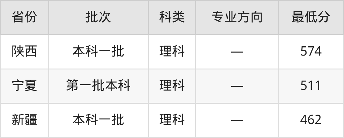 长安大学工商管理类专业在全国各省录取分数线: