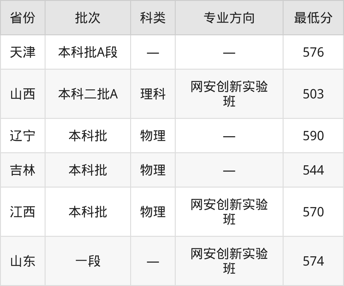 北京联合大学信息安全专业录取分数线从503分到590分不等,最低分数线如下:
