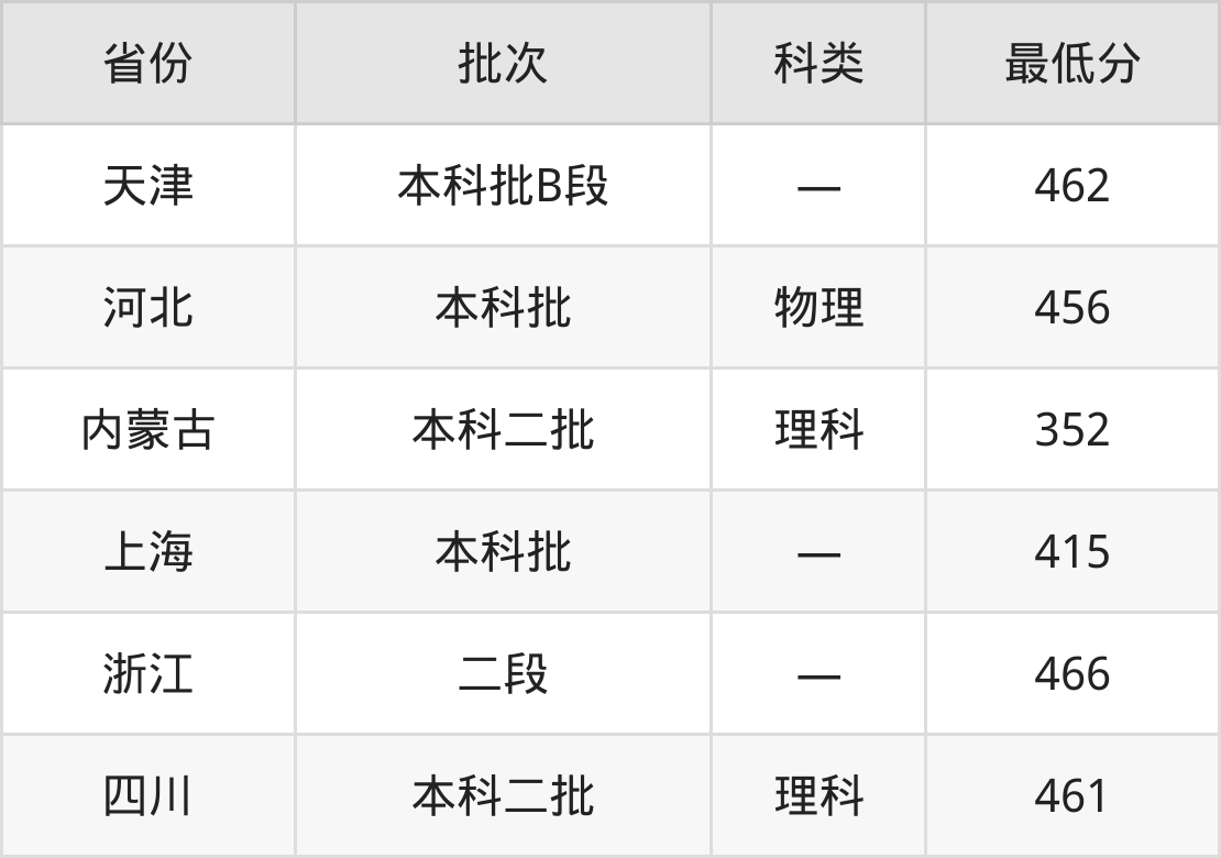 首都师范大学科德学院计算机科学与技术专业在全国各省最低录取分数线为352分(内蒙古理科),除此之外,在其余地区的最低分为天津462分、河北物理类456分、上海415分、浙江466分等,以上数据均为2024年数据,供2025年高考生参考。