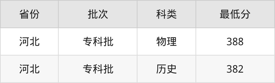甘肃畜牧工程职业技术学院智能网联汽车技术专业录取分数线从382分到388分不等,最低分数线如下: