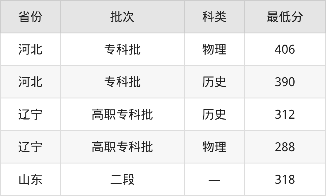 石家庄科技信息职业学院机电一体化技术专业录取分数线从288分到406分不等,最低分数线如下: