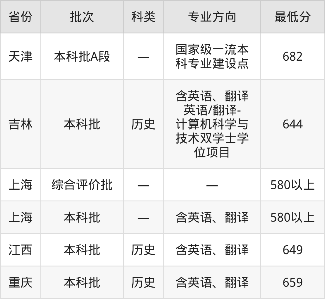 复旦大学英语专业录取分数线从580分到682分不等,最低分数线如下: