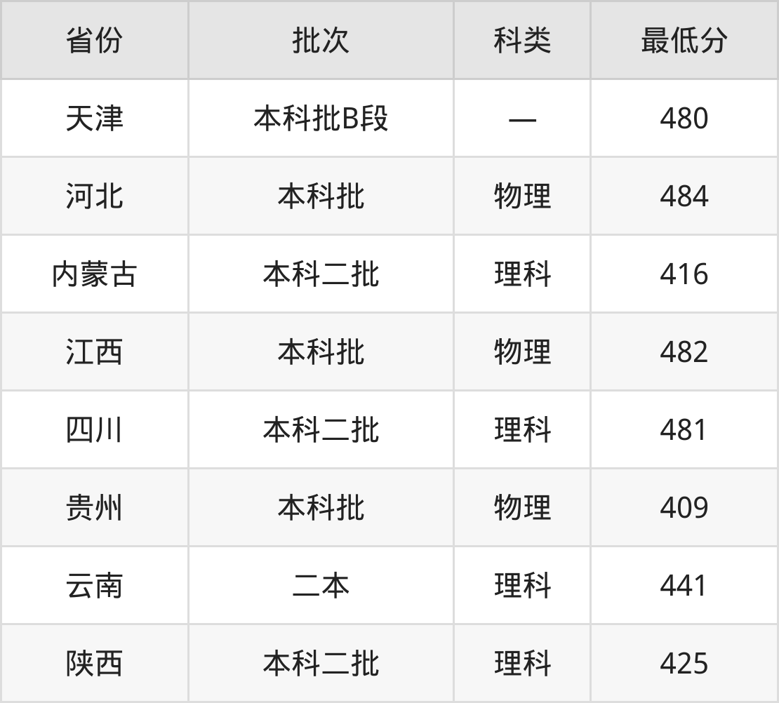 内蒙古:理科最低416分