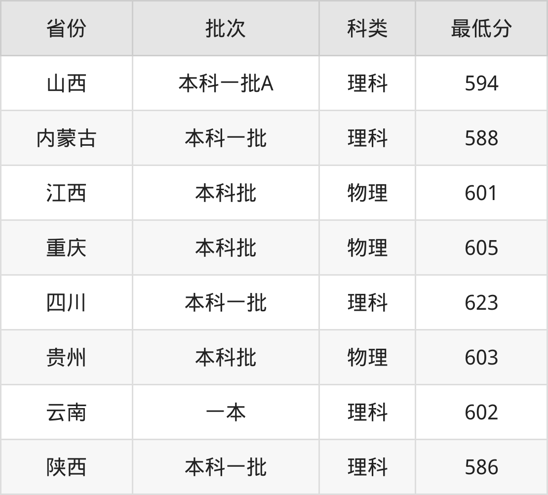 西北农林科技大学生物育种科学专业在全国各省最低录取分数线为586分(陕西理科),除此之外,在其余地区的最低分为四川理科623分、贵州物理类603分、云南理科602分、山西理科594分等,以上数据均为2024年数据,供2025年高考生参考。