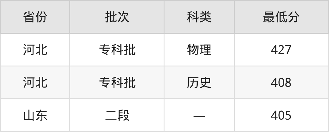 江西机电职业技术学院软件技术专业录取分数线从405分到427分不等,最低分数线如下: