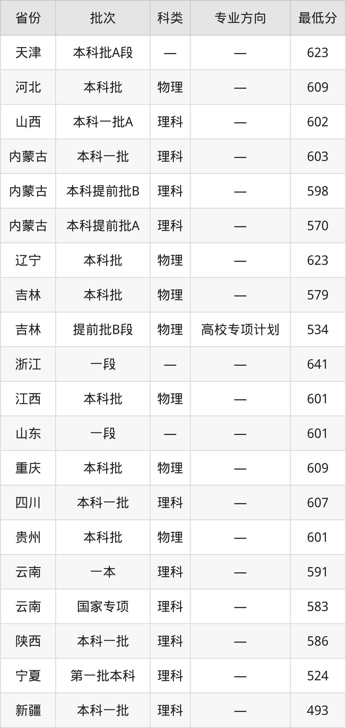 中国矿业大学(北京)机械类专业在全国各省最低录取分数线为493分(新疆理科),除此之外,在其余地区的最低分为天津623分、河北物理类609分、山东601分、重庆物理类609分等,以上数据均为2024年数据,供2025年高考生参考。
