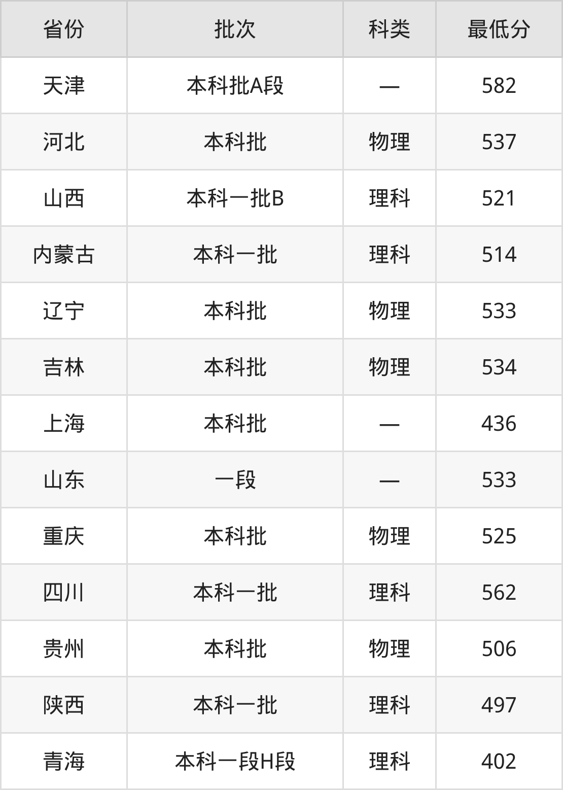 石家庄铁道大学建筑环境与能源应用工程专业录取分数线从402分到582分不等,在部分地区的最低分数线如下: