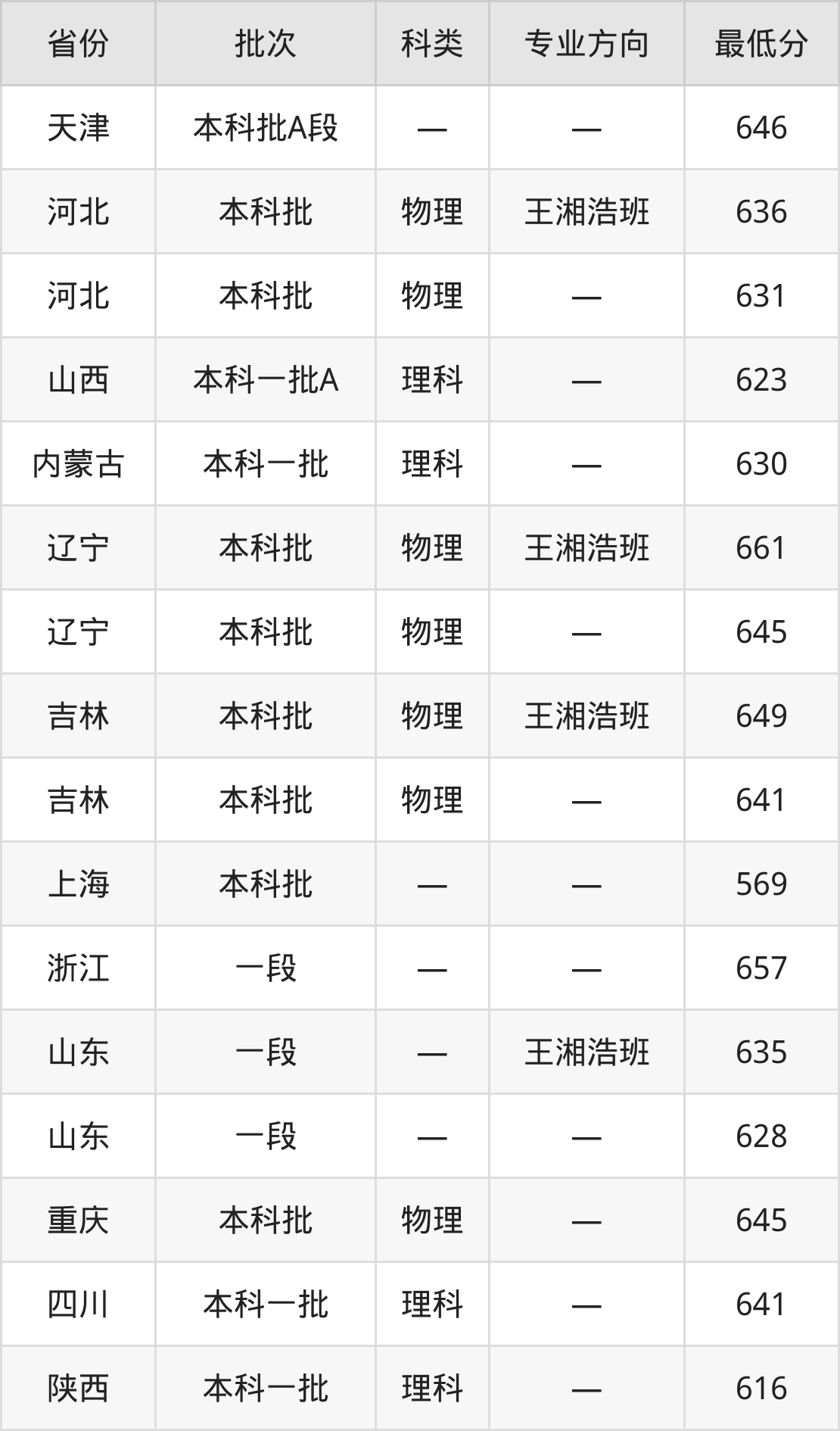 山西:理科最低623分