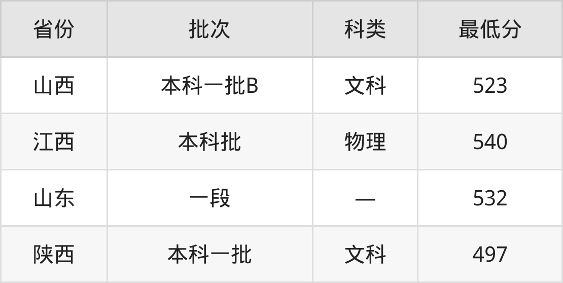 桂林电子科技大学人力资源管理专业在全国各省最低录取分数线为497分(陕西文科),除此之外,在其余地区的最低分为山西文科523分、江西物理类540分、山东532分,以上数据均为2024年数据,供2025年高考生参考。