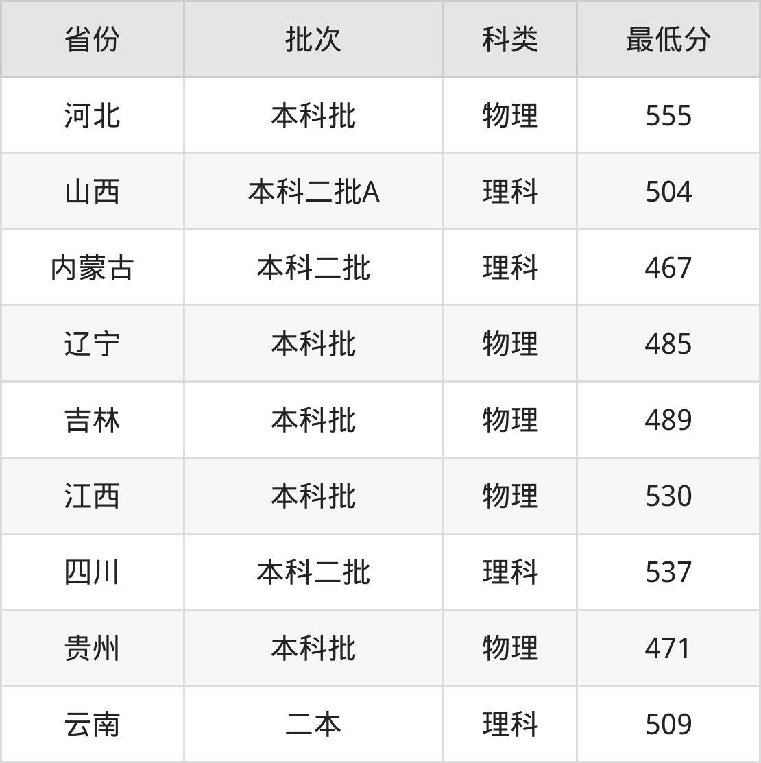内蒙古:理科最低467分