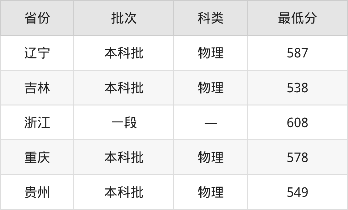 扬州大学水利水电工程专业在全国各省最低录取分数线为538分(吉林物理类),除此之外,在其余地区的最低分为浙江608分、重庆物理类578分、贵州物理类549分、辽宁物理类587分,以上数据均为2025年数据,供2026年高考生参考。