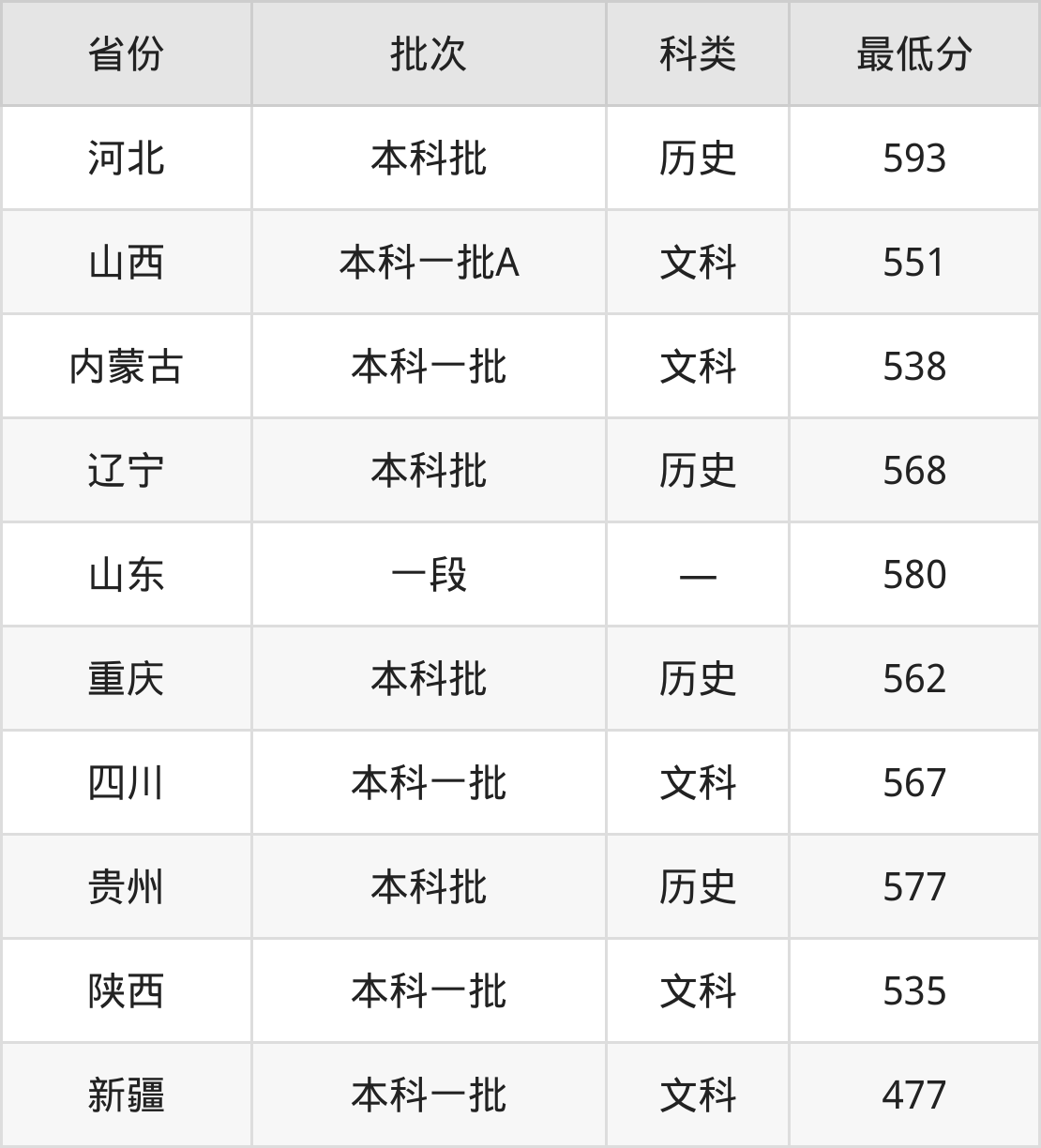 中国石油大学(北京)克拉玛依校区汉语言文学专业在全国各省最低录取分数线为477分(新疆文科),除此之外,在其余地区的最低分为内蒙古文科538分、辽宁历史类568分、山东580分、河北历史类593分等,以上数据均为2024年数据,供2025年高考生参考。