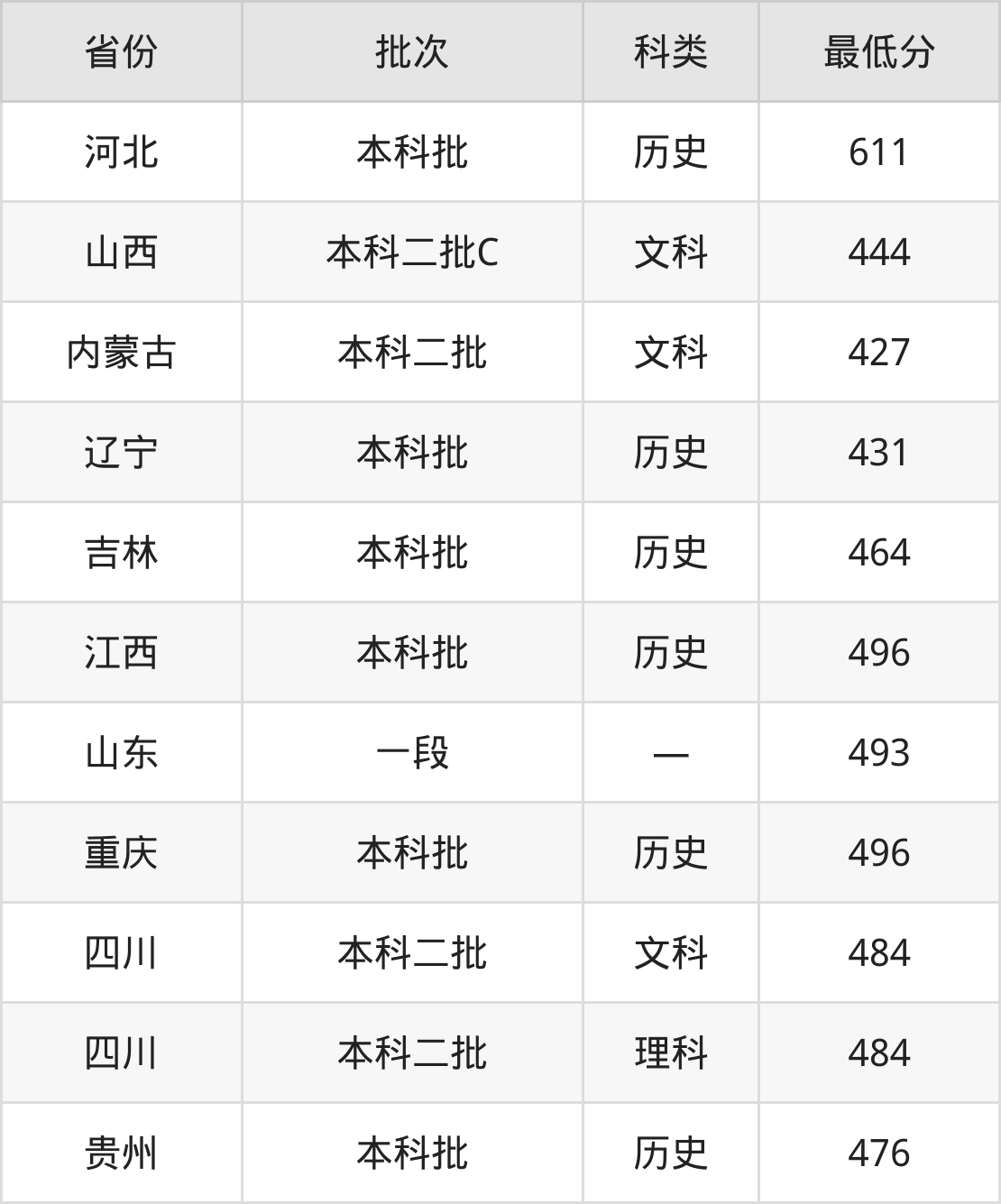 西南交通大学希望学院会计学专业录取分数线从427分到611分不等,最低分数线如下: