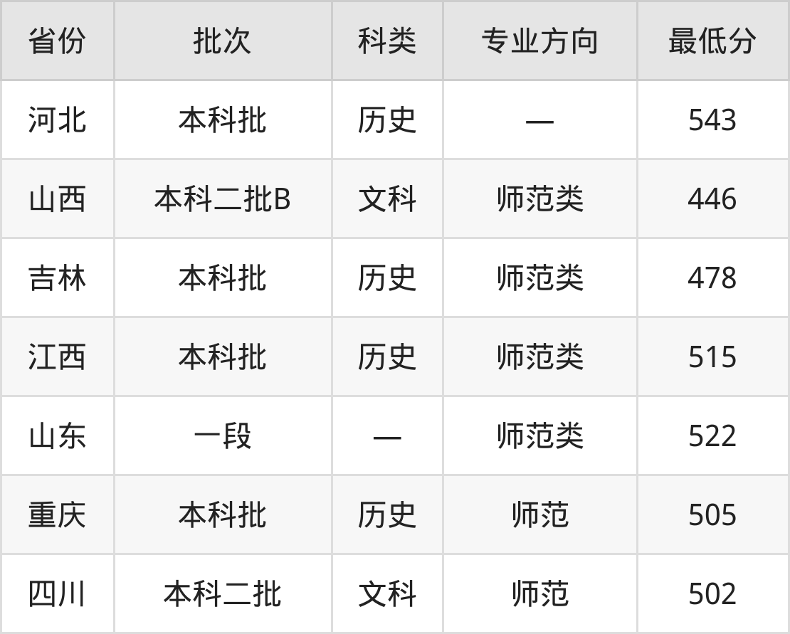 商丘师范学院英语专业在全国各省最低录取分数线为446分(山西文科),除此之外,在其余地区的最低分为山东522分、重庆历史类505分、四川文科502分、河北历史类543分等,以上数据均为2024年数据,供2025年高考生参考。