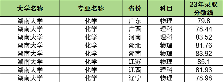 以下会介绍湖南大学在广东、广西、河南、湖北、湖南、江苏、江西、辽宁的录取分数划线。