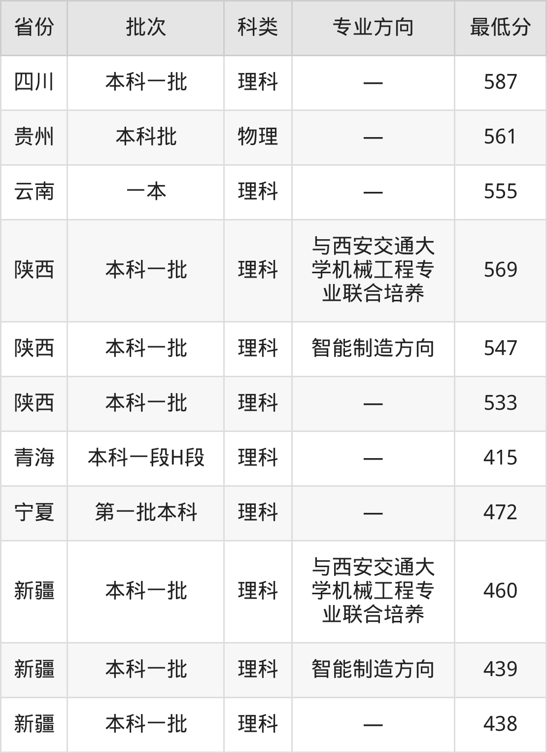 新疆大学机械工程专业录取分数线从415分到610分不等,在部分地区的最低分数线如下: