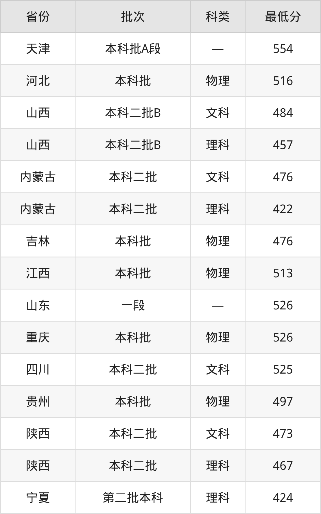 湖南医药学院护理学专业录取分数线从422分到554分不等,在部分地区的最低分数线如下: