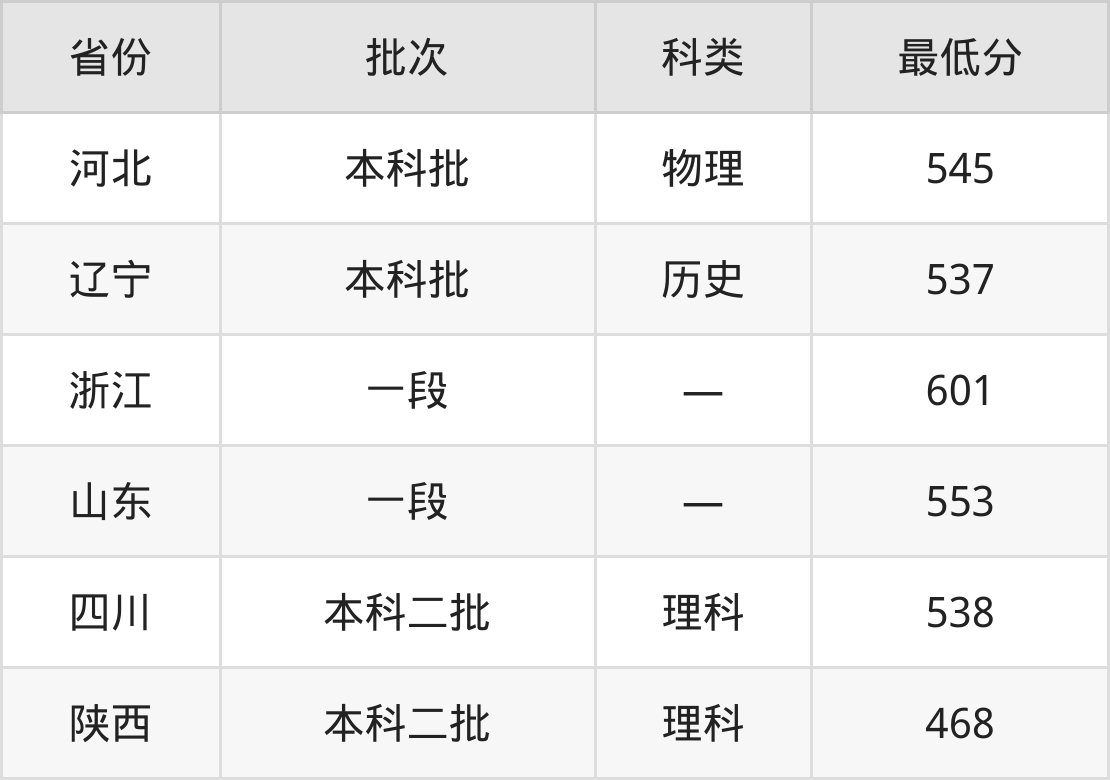 西藏大学地理信息科学专业录取分数线从468分到601分不等,最低分数线如下: