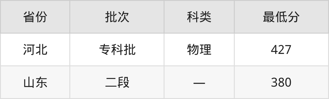 河南工业和信息化职业学院智能控制技术专业在全国各省最低录取分数线为380分(山东),除此之外,在其余地区的最低分为河北物理类427分,以上数据均为2025年数据,供2026年高考生参考。