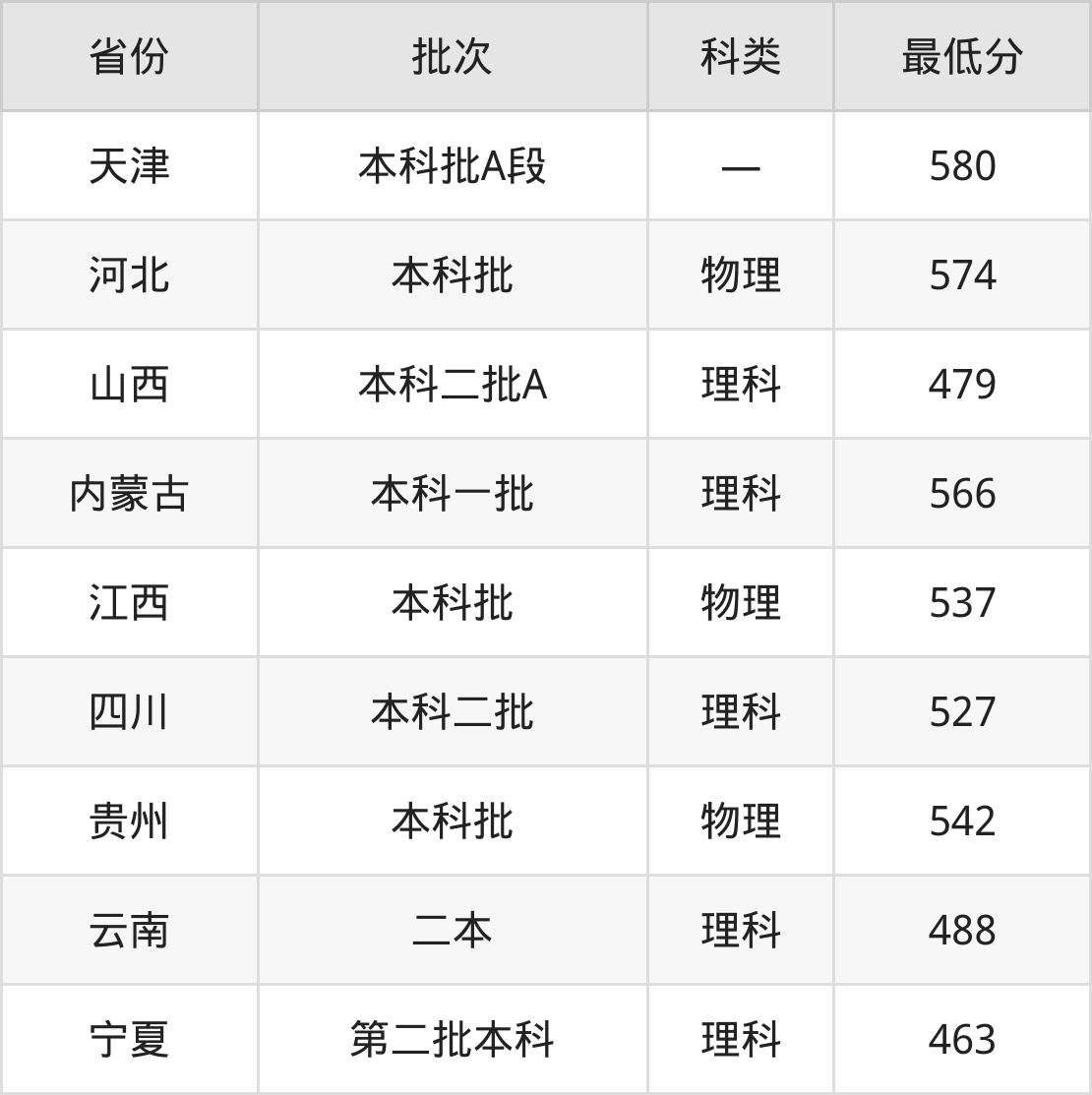 宁夏:理科最低463分