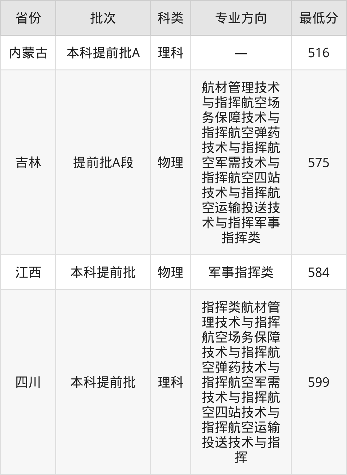 空军工程大学场站管理工程专业在全国各省录取分数线: