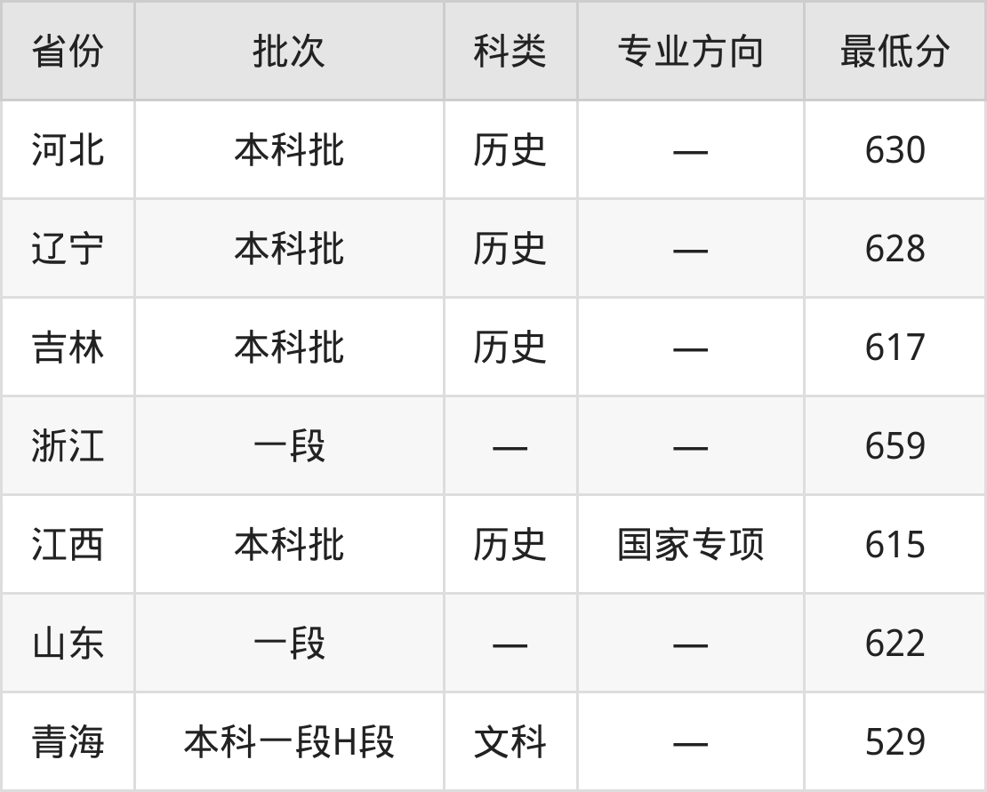 中国政法大学国际政治专业在全国各省最低录取分数线为529分(青海文科),除此之外,在其余地区的最低分为江西历史类615分、山东622分、河北历史类630分、辽宁历史类628分等,以上数据均为2024年数据,供2025年高考生参考。