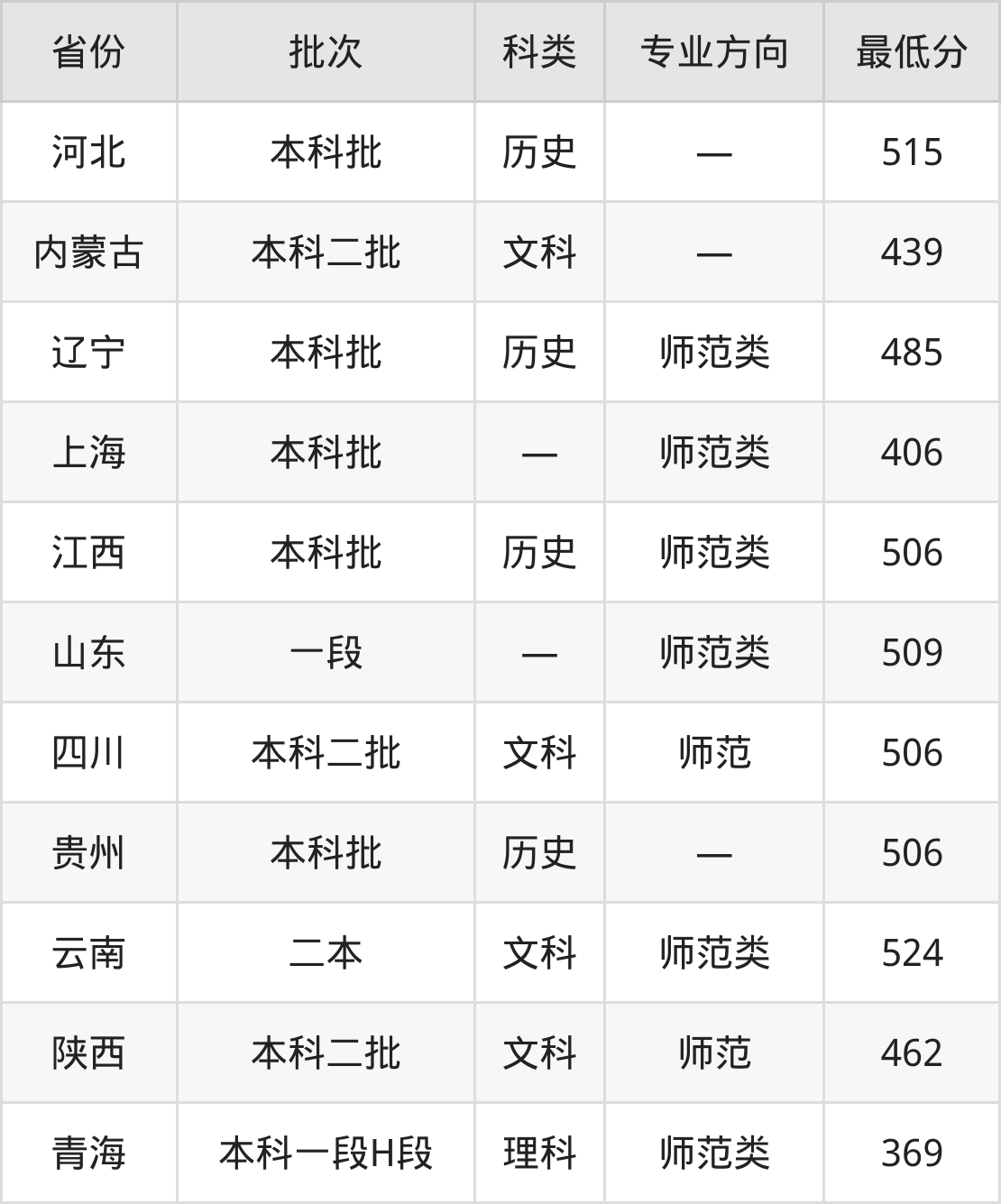 昌吉学院汉语言文学专业录取分数线从369分到524分不等,在部分地区的最低分数线如下: