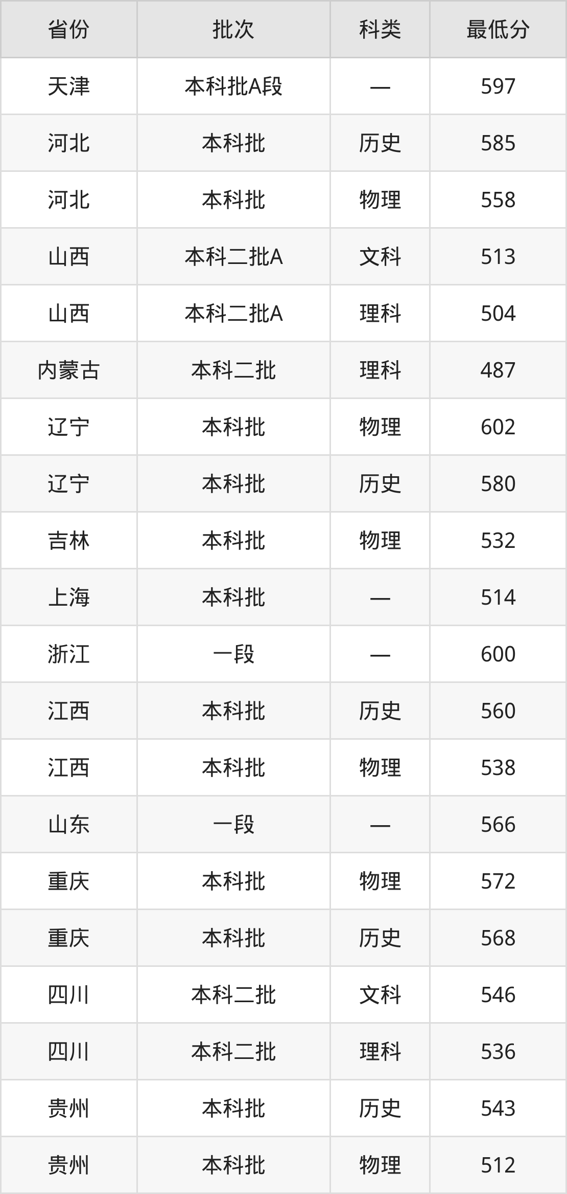 浙江传媒学院网络与新媒体专业录取分数线从473分到602分不等,在部分地区的最低分数线如下: