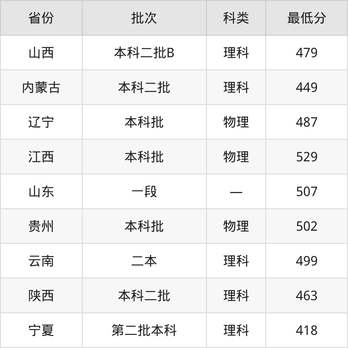 山西:理科最低479分